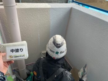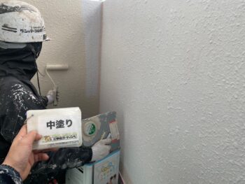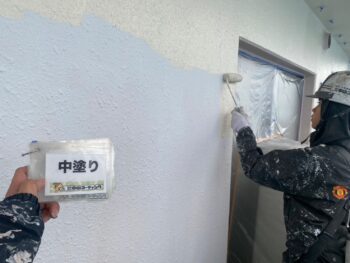外壁中塗り塗装を行います。