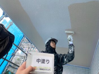 N様邸では軒天井塗装作業を行いました。