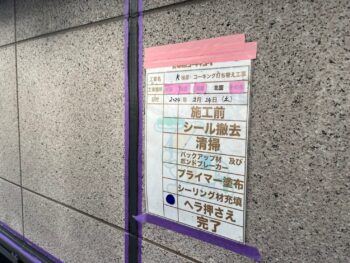 ラウムズかちどき橋様では外壁塗装作業を行いました。