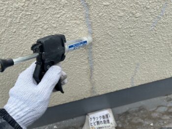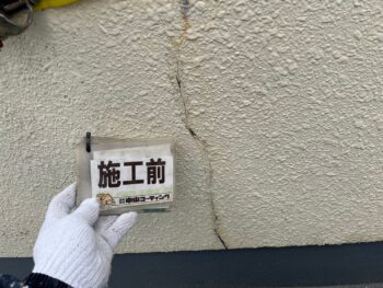 ひび割れ箇所や欠損箇所は塗装前に補修を行います。
