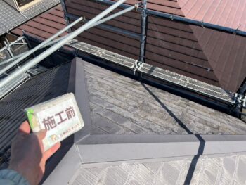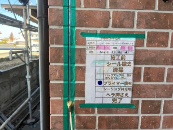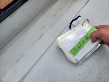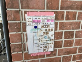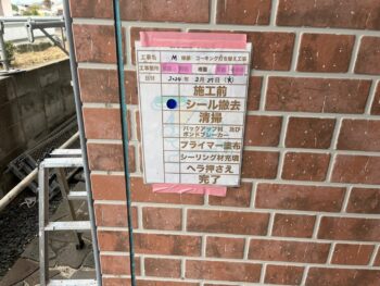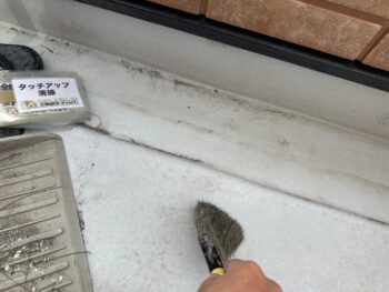 既存の古いコーキング材を撤去し、溝をブラシで清掃します。