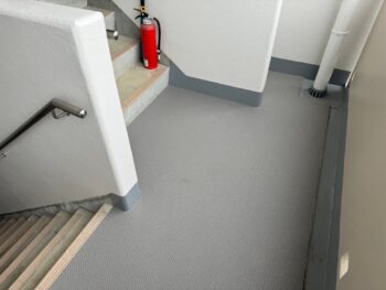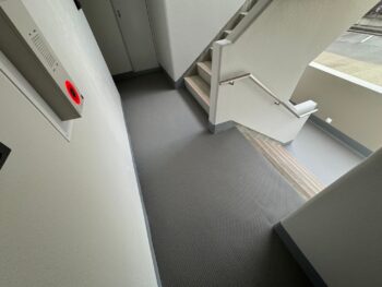 横川マンション様では共有通路部分 長尺シート張りを行いました。
