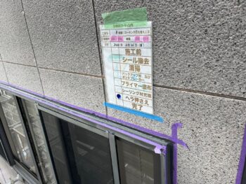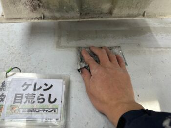 ラウムズかちどき橋様では塗装前の下地補修を行いました。