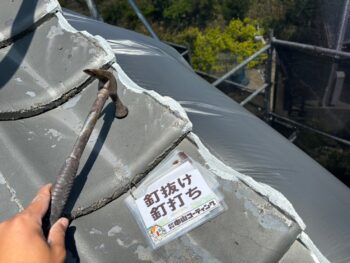 塗装前に釘浮き箇所の釘打ちを行います。