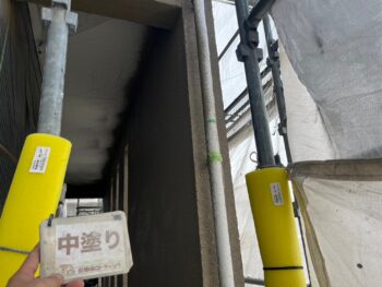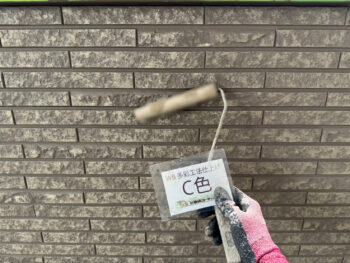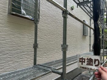 外壁中塗り塗装を行います。