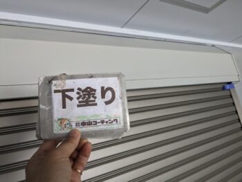 シャッターBOX下塗り塗装を行います。