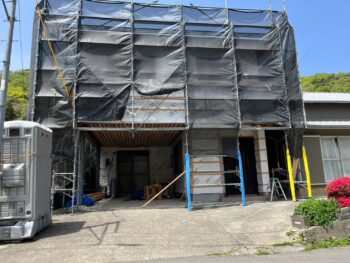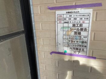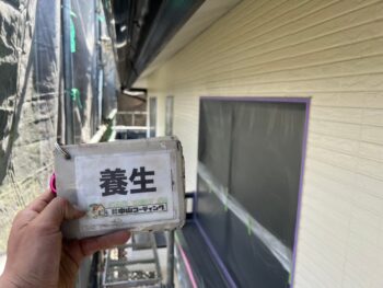 M様邸では塗装作業前のビニール養生作業を行いました。