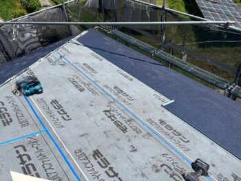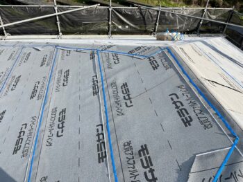 木下地設置後、ルーフィング(防水シート)を設置します。