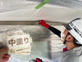 外壁中塗り塗装2回目を行います。