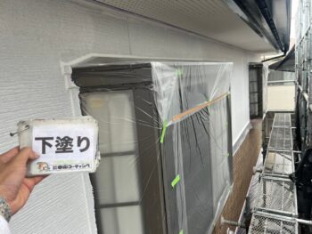 外壁下塗り塗装作業を行いました。