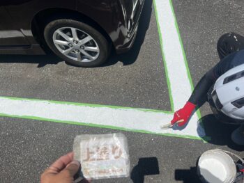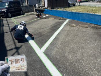 グリーンメゾン様では駐車場の白線塗装を行いました。