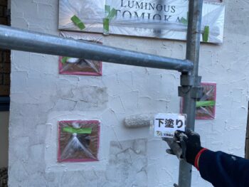 ルミナス富岡様では塀塗装作業を行いました。