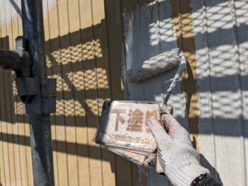 塀 下塗り塗装を行います。