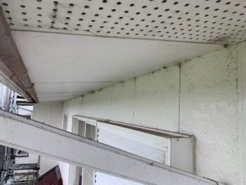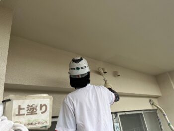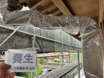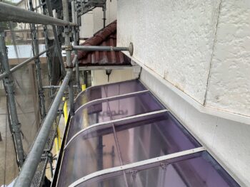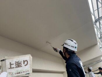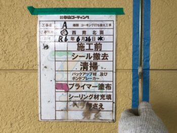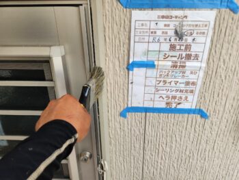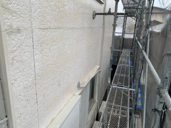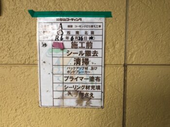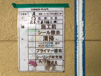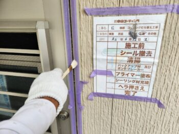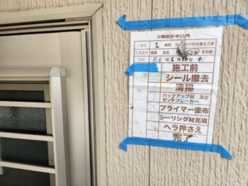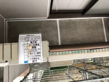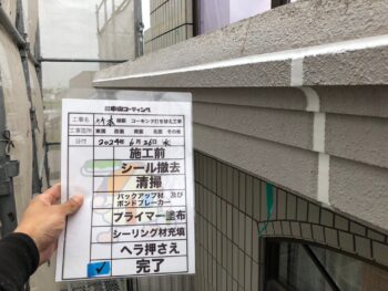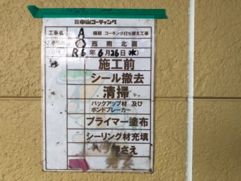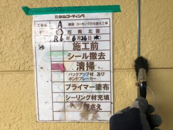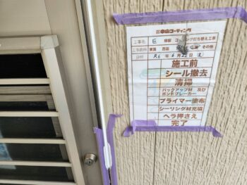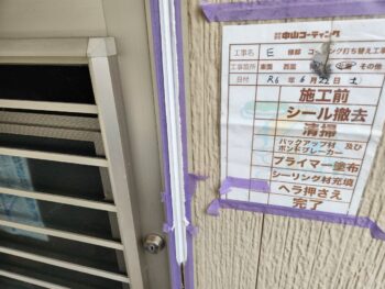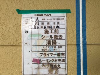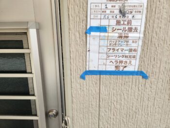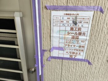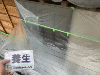 養生のマスキングテープを剥がし施工完了です。/外壁