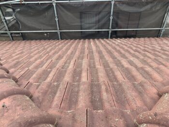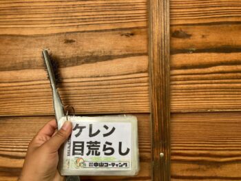 既存の古いコーキング材を撤去します。/屋根棟板金