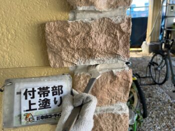 コーナー箇所上塗り塗装を行います。