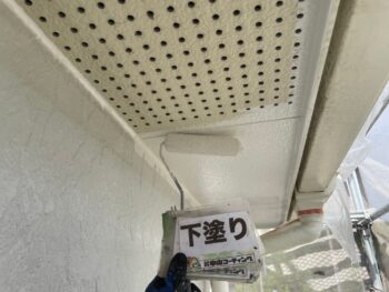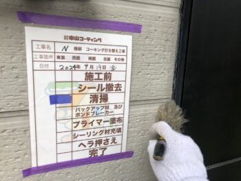 Y様邸ではベランダ床面の防水塗装作業を行いました。