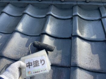 屋根中塗り塗装を行います。