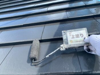 屋根上塗り塗装作業を行います。
