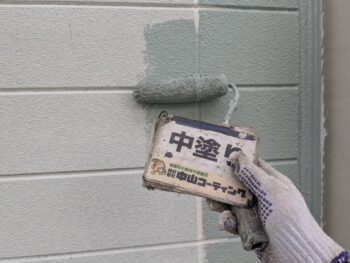 外壁中塗り塗装を行います。