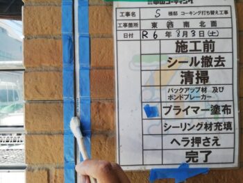 S様邸ではコーキング作業を行いました。