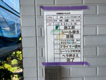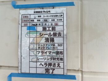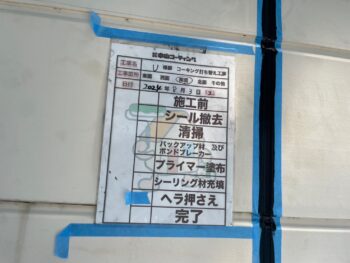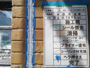 既存コーキング撤去作業を行います。