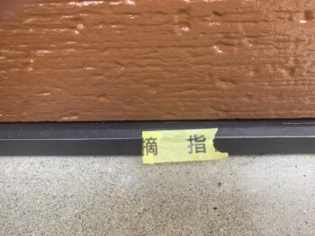塗料の付着箇所や塗る忘れ箇所にマスキングテープでチェックをつけていきます。