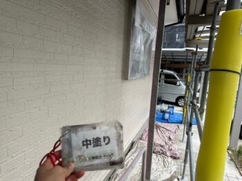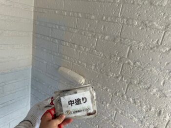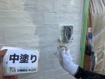 外壁中塗り塗装を行います。