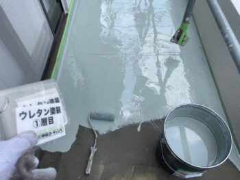 ウレタン塗膜防水1層めを行います。