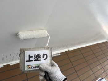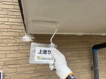 軒天井塗装作業を行います。