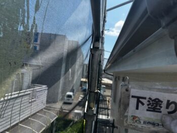 破風鼻隠し ケレン目荒らし作業を行います。