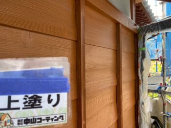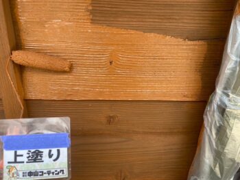木部外壁上塗り塗装を行います。