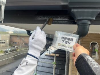破風鼻隠し 下塗り塗装を行います。