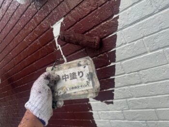 外壁中塗り塗装を行います。