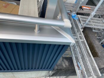 手摺の根元やジョイント部分にコーキング材を充填します。