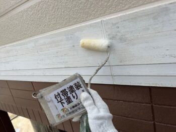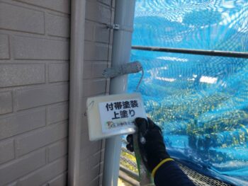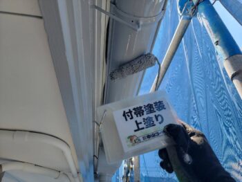 雨樋や破風などの付帯部上塗り塗装を行います。