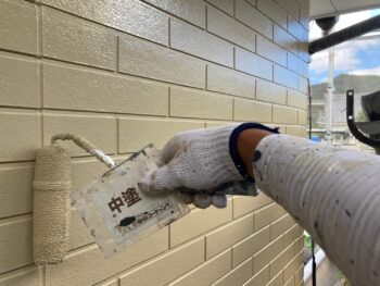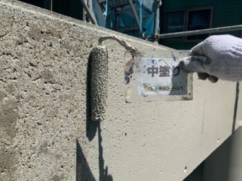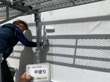 外壁中塗り塗装を行います。