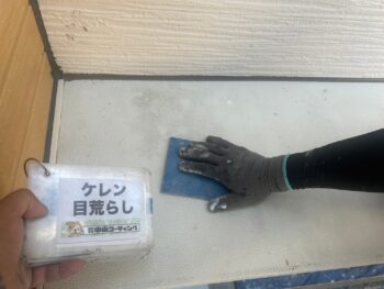シャッターボックスや柱・土台水切り ケレン目荒らし作業を行います。