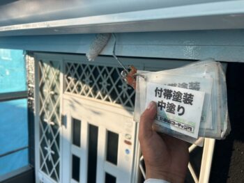 付帯部中塗り塗装を行います。