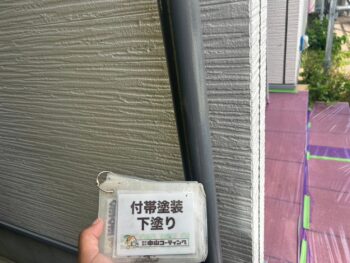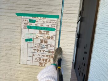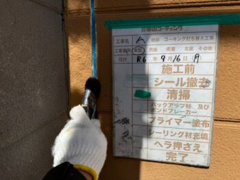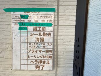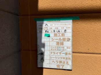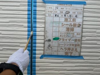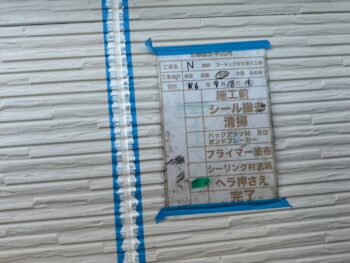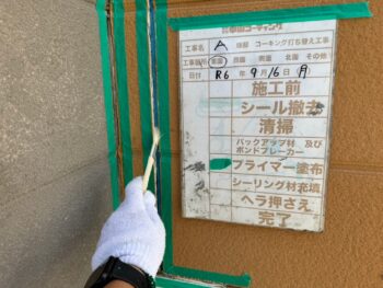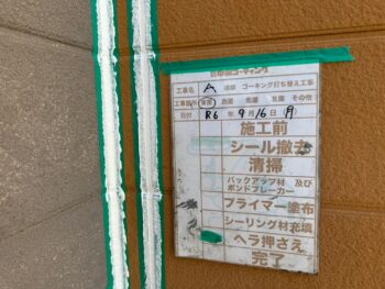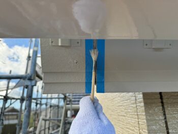通常コーキング材は先に打ちますが、クリヤー塗装の場合は塗装作業完了後にいコーキング施工を行います。