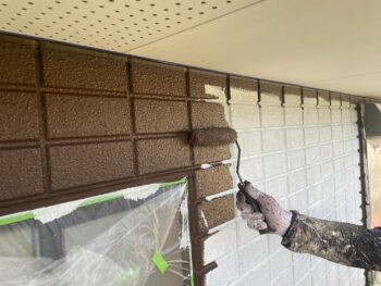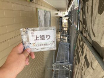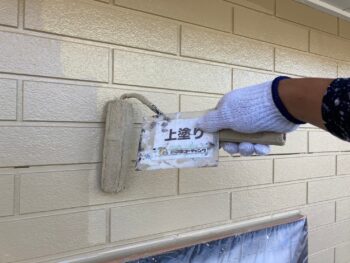 Y様邸では外壁上塗り塗装作業を行いました。