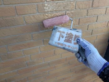 外壁クリヤー下塗り塗装を行います。