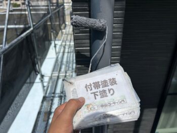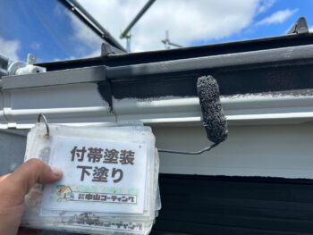 雨樋や破風 下塗り塗装を行います。
