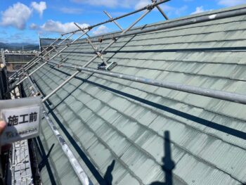 撥水の効果がなくなり苔がびっしり生えています。