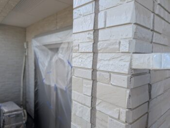 壁面の欠損箇所はクリヤー塗装を行う前に現状の外壁色と同じような色で補修を行う必要があります。