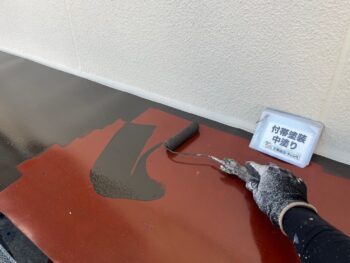 ケレン目荒らし後、錆止め下塗り塗装を行います。