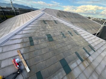 ヘラで平らに押さえ養生のマスキングテープを剝がします。