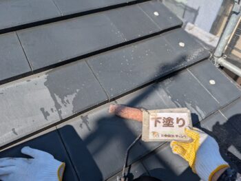 屋根下塗り塗装を行います。