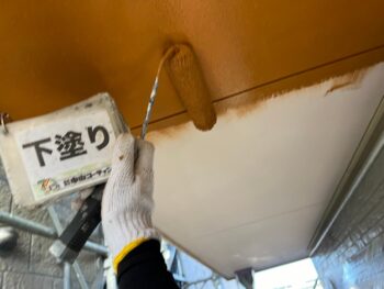 軒天井下塗り塗装を行います。