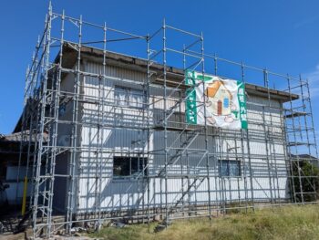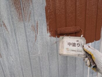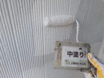 外壁中塗り塗装を行います。